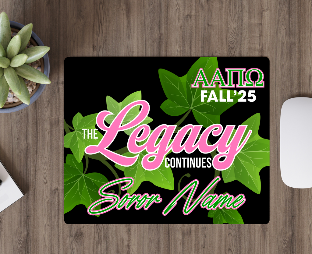 Upgrade your workspace and celebrate your Fall ’25 journey with this vibrant, personalized mousepad. Featuring bold chapter lettering, ivy accents, and your soror name, this design makes every click a little more meaningful. Available in multiple background colors to match your style.