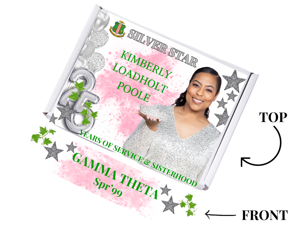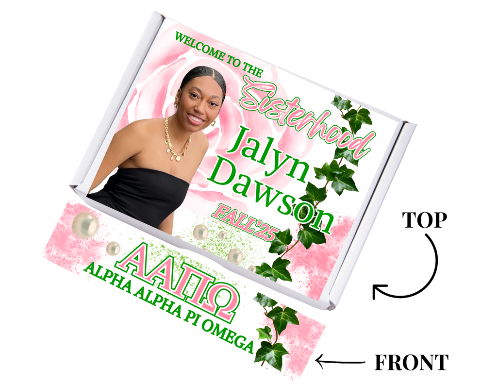 Keywords: personalized mailer box, custom photo gift box, keepsake mailer, sorority gift box